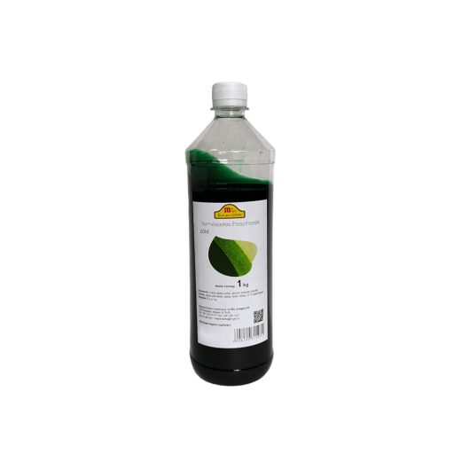 Zöld természetes ételszínezék összetevői: fruktóz-glükóz-szörp, finomszesz, színezék: klorofill
